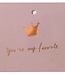 Klein kaartje met leuke tekst, voorzien van een gaatje.